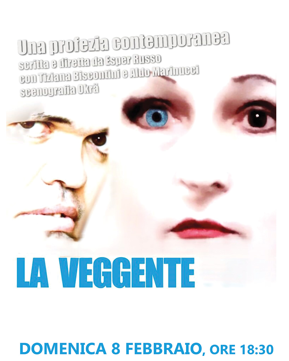 La Veggente, uno spettacolo scomodo, che dice parole che nessuno spettatore vorrebbe ascoltare. La Veggente ci indica un cammino di passi liberatori e scopre che il destino di ciascuno di noi ce lo portiamo dentro. Se noi siamo la trappola, siamo anche il nostro liberatore. Arte teatrale che mette in gioco ciascuno di noi; gesto, parola, musica. Una profezia contemporanea. La Veggente si fa carico di tutta l’umanità.