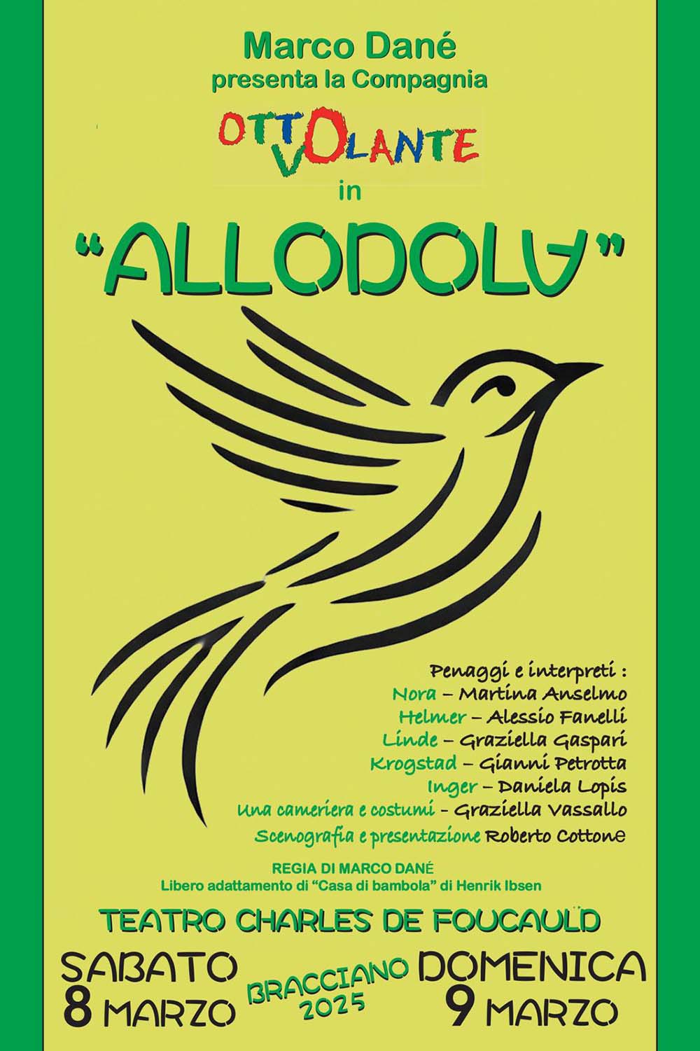 "ALLODOLA" è un libero adattamento di "Casa di Bambola" di Ibsen messo in scena dalla Compagnia Ottovolante che vede come autore e regista Marco Dané.