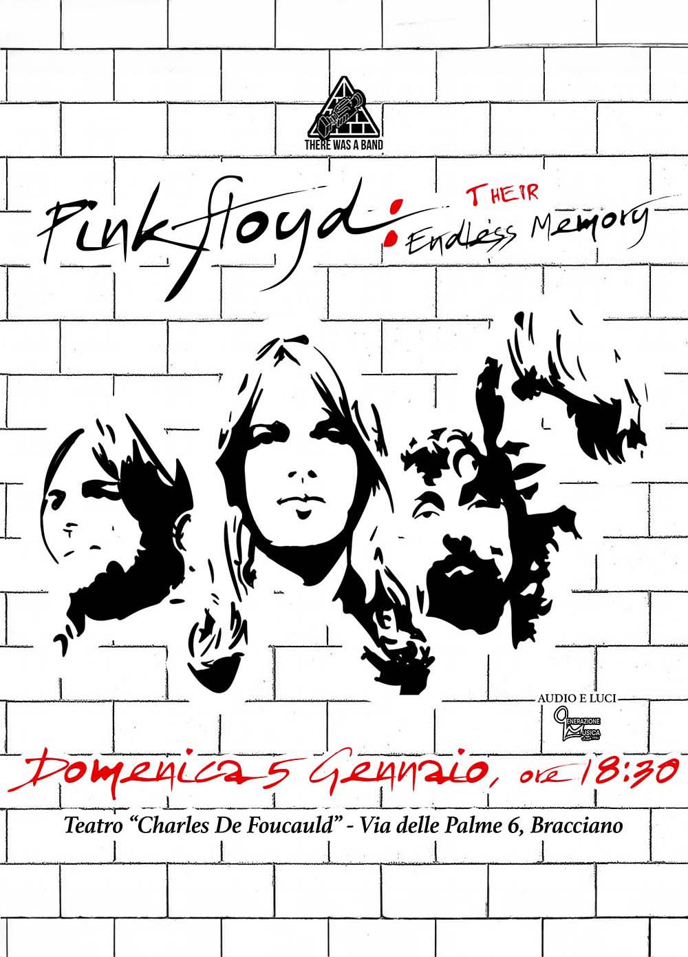 "Pink Floyd: Their Endless Memory", un grande evento della band "There Was a Band" dedicato allo storico gruppo dei Pink Floyd con l'esecuzione live di tutti i loro più grandi successi. L'evento, unico per il nostro territorio, è ospitato con grande piacere dal nostro teatro, certi di proporre una serata artisticamente all'altezza e di grande qualità musicale.