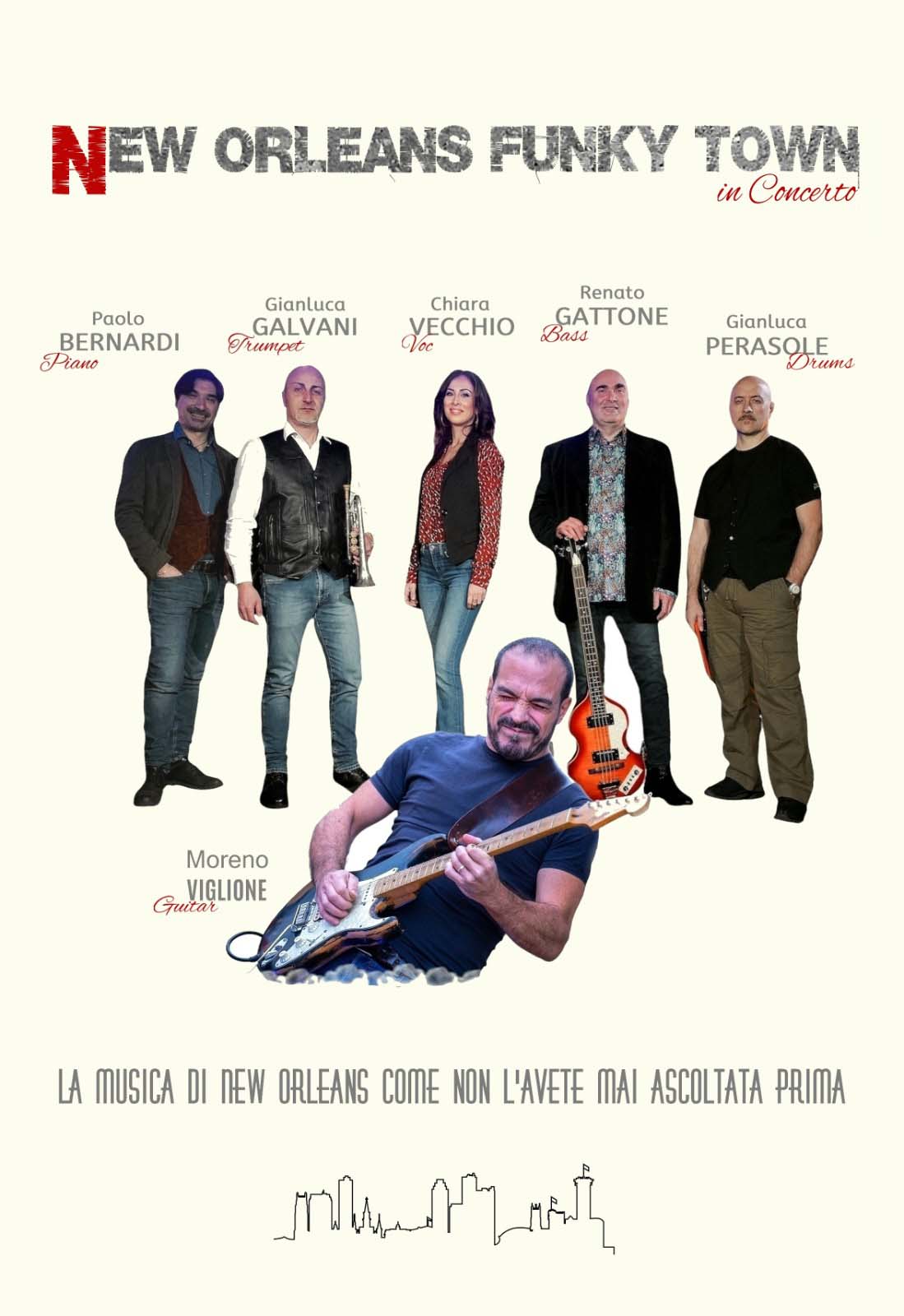 New Orleans Funky Town si distingue per la sua audace rielaborazione sia armonica che ritmica dei classici intramontabili. La band, composta da talentuosi musicisti, sfida le convenzioni musicali proponendo una fusione di stili che spaziano dal soul al blues, dal funk al latin.